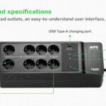 • Insgesamt 8 Ausgänge: 6x Batterie-Backup + Überspannungsschutz, 2x nur Überspannungsschutz