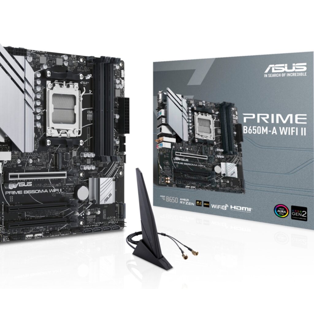 Das ASUS PRIME B650M-A WIFI II (AM5) (D) von ASUS bietet zuverlaessige Mainboard-Performance mit hochwertigen Komponenten, umfangreichen Anschlussmöglichkeiten und ASUS-typischer Qualitaet. Ideal fuer Gaming- und Workstation-Systeme.