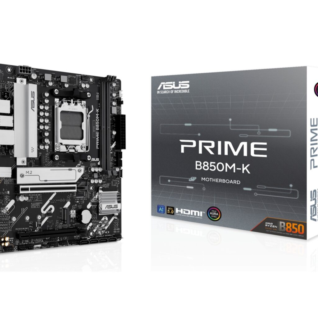Das ASUS PRIME B850M K (AM5) (D) von ASUS bietet zuverlaessige Mainboard-Performance mit hochwertigen Komponenten, umfangreichen Anschlussmöglichkeiten und ASUS-typischer Qualitaet. Ideal fuer Gaming- und Workstation-Systeme.