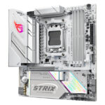 Das ROG Strix B850-G verfügt über ein strahlend weißes PCB für einen mutigen, zukunftsweisenden Stil, der zu fast jedem PC-Setup passt. Gepaart mit metallischen Kühlkörpern präsentiert es einen kühnen und unverfälschten Charme, während ein Hauch von RGB an der E/A-Kante die Wahl zwischen dezenter Anmut oder einem lebendigen, leuchtenden Schlag bietet.