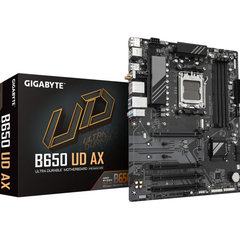 Das Gigabyte GA-B650 UD AX (AM5) (D) von Gigabyte kombiniert robuste Verarbeitung mit vielfaeltigen Features. Mit modernem Chipset und zahlreichen Erweiterungsmoeglichkeiten fuer leistungsstarke PC-Systeme.