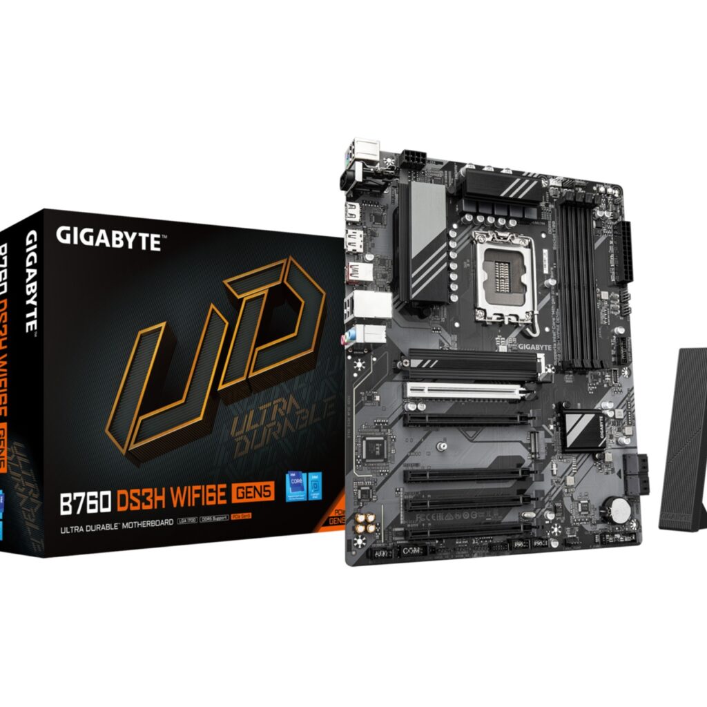 Das Gigabyte GA-B760 DS3H WF6E GEN5 (1700) (D) von Gigabyte kombiniert robuste Verarbeitung mit vielfaeltigen Features. Mit modernem Chipset und zahlreichen Erweiterungsmoeglichkeiten fuer leistungsstarke PC-Systeme.