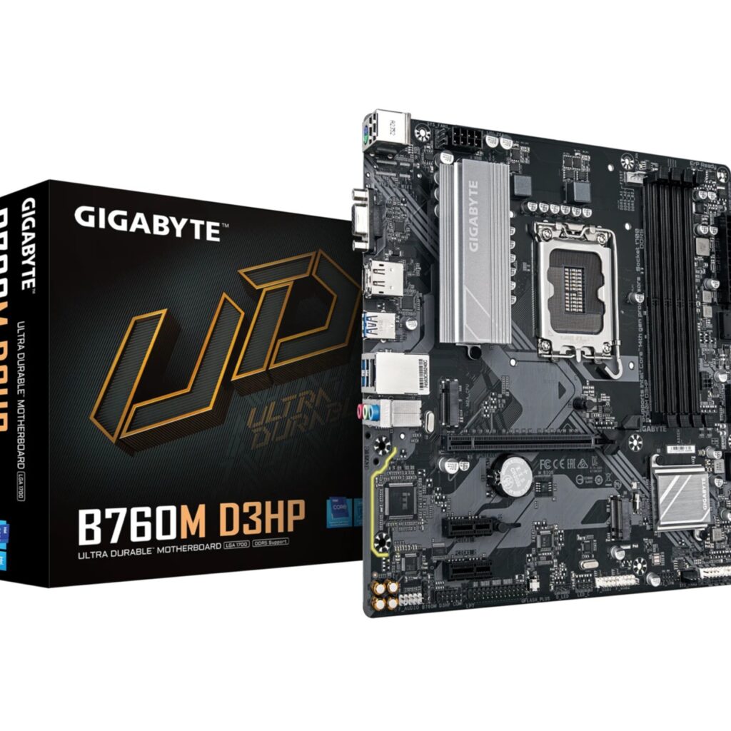 Das Gigabyte GA-B760M D3HP (1700) (D) von Gigabyte kombiniert robuste Verarbeitung mit vielfaeltigen Features. Mit modernem Chipset und zahlreichen Erweiterungsmoeglichkeiten fuer leistungsstarke PC-Systeme.