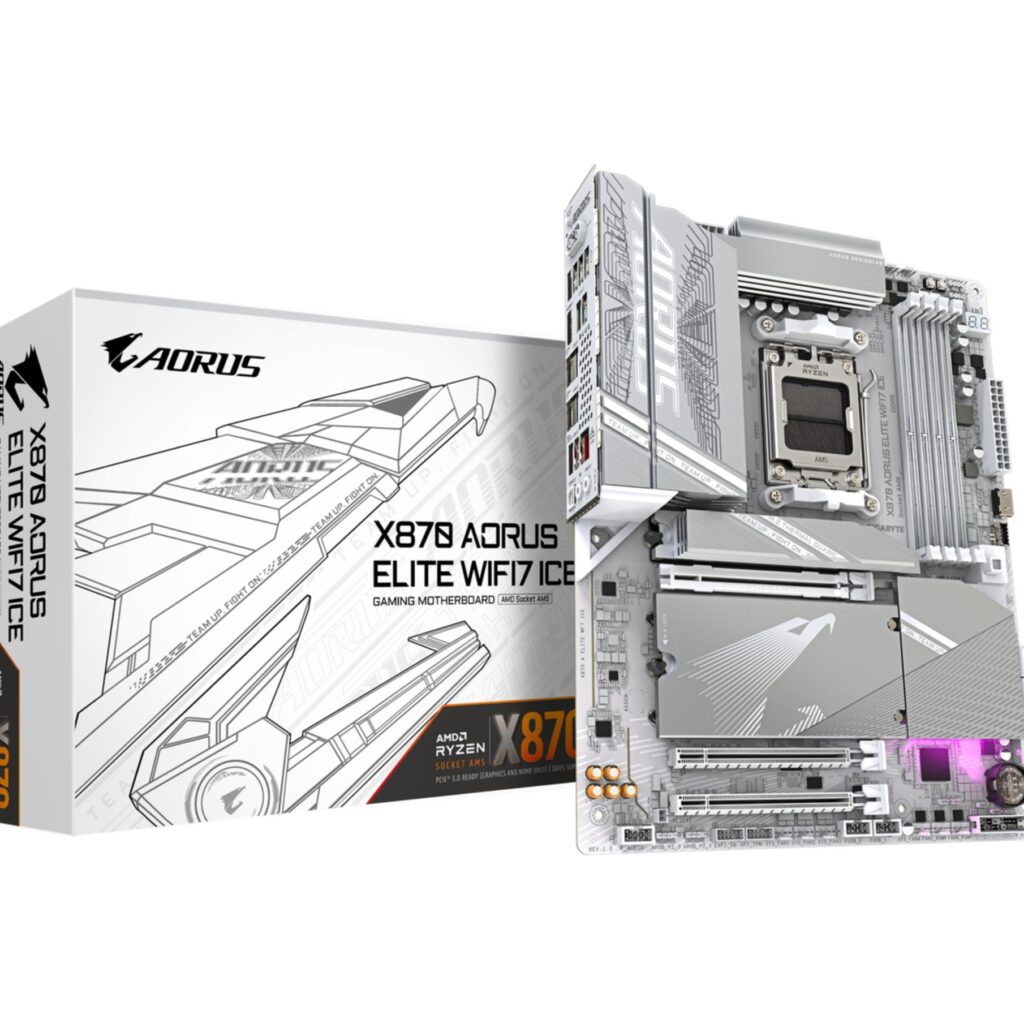 Das Gigabyte GA-X870 A ELITE WF7 ICE (AM5) (D) von Gigabyte kombiniert robuste Verarbeitung mit vielfaeltigen Features. Mit modernem Chipset und zahlreichen Erweiterungsmoeglichkeiten fuer leistungsstarke PC-Systeme.