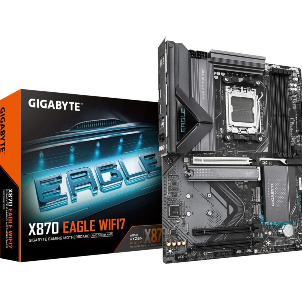 Das Gigabyte GA-X870 EAGLE WIFI7 (AM5) (D) von Gigabyte kombiniert robuste Verarbeitung mit vielfaeltigen Features. Mit modernem Chipset und zahlreichen Erweiterungsmoeglichkeiten fuer leistungsstarke PC-Systeme.