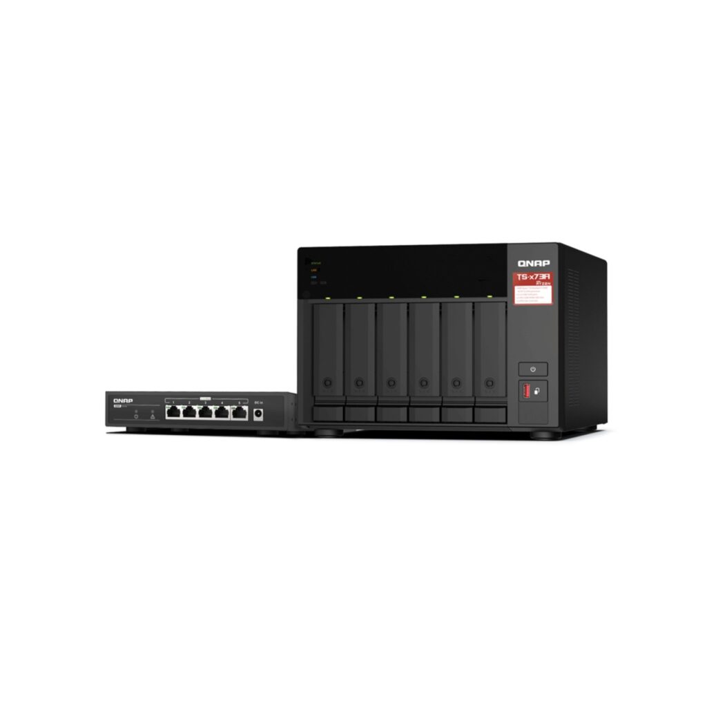 Das NAS Server QNAP TS-673A-SW5T 6-Bay von QNAP ist ein leistungsstarkes Netzwerkspeichersystem fuer zentrale Datenverwaltung, Backups und Medienstreaming.