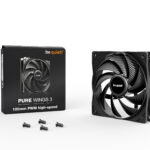 be quiet! Pure Wings 3 120mm PWM high-speed. Typ: Ventilator, Lüfterdurchmesser: 12 cm, Rotationsgeschwindigkeit (max.): 2100 RPM, Luftstrom: 101,2 m³/h, Maximum Luftdruck: 2,41 mmH2O. Spannung: 5 - 13.2 V. Breite: 120 mm, Tiefe: 120 mm, Höhe: 25 mm. Produktfarbe: Schwarz