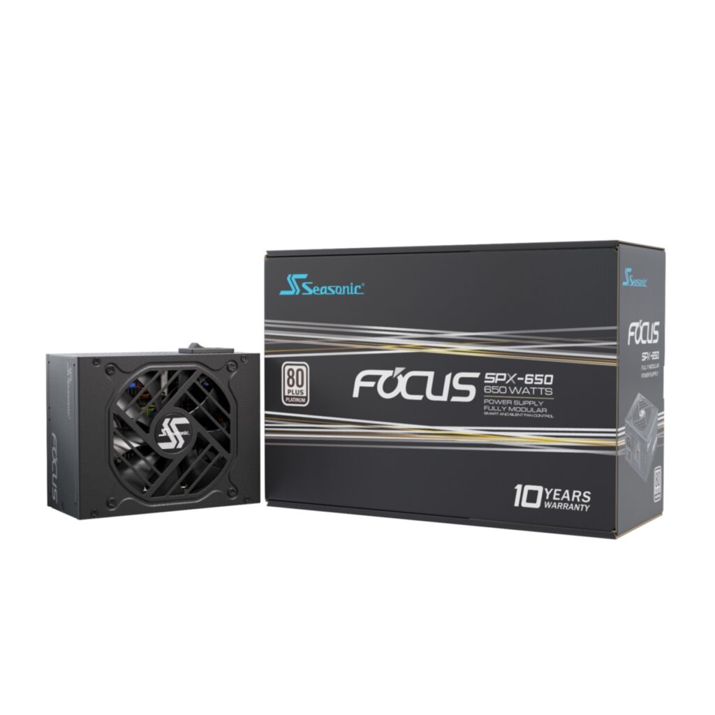 Das Seasonic Focus-SPX-650 650W Platinum bietet 650 W Leistung mit 80 PLUS Platinum Zertifizierung für zuverlässige und effiziente Stromversorgung.